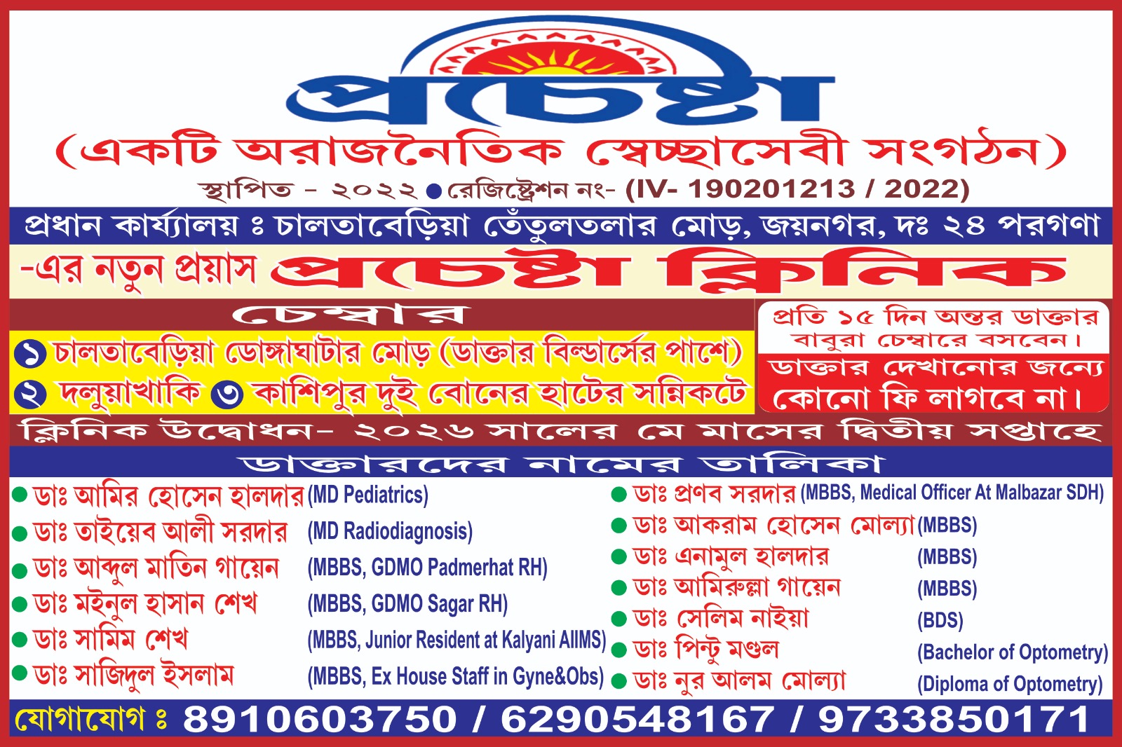 জয়নগর বিধানসভার তৃণমূল কংগ্রেসের মনোনীত প্রার্থী মমতা বন্দ্যোপাধ্যায়ের আশীর্বাদ ধন্য অভিষেক বন্দ্যোপাধ্যায় স্নেহধন্য প্রার্থী বিশিষ্ট শিক্ষক বিশ্বনাথ দাসের সমর্থনে দক্ষিণ বারাসত অঞ্চলে জনযোয়ার জয়নগরে….